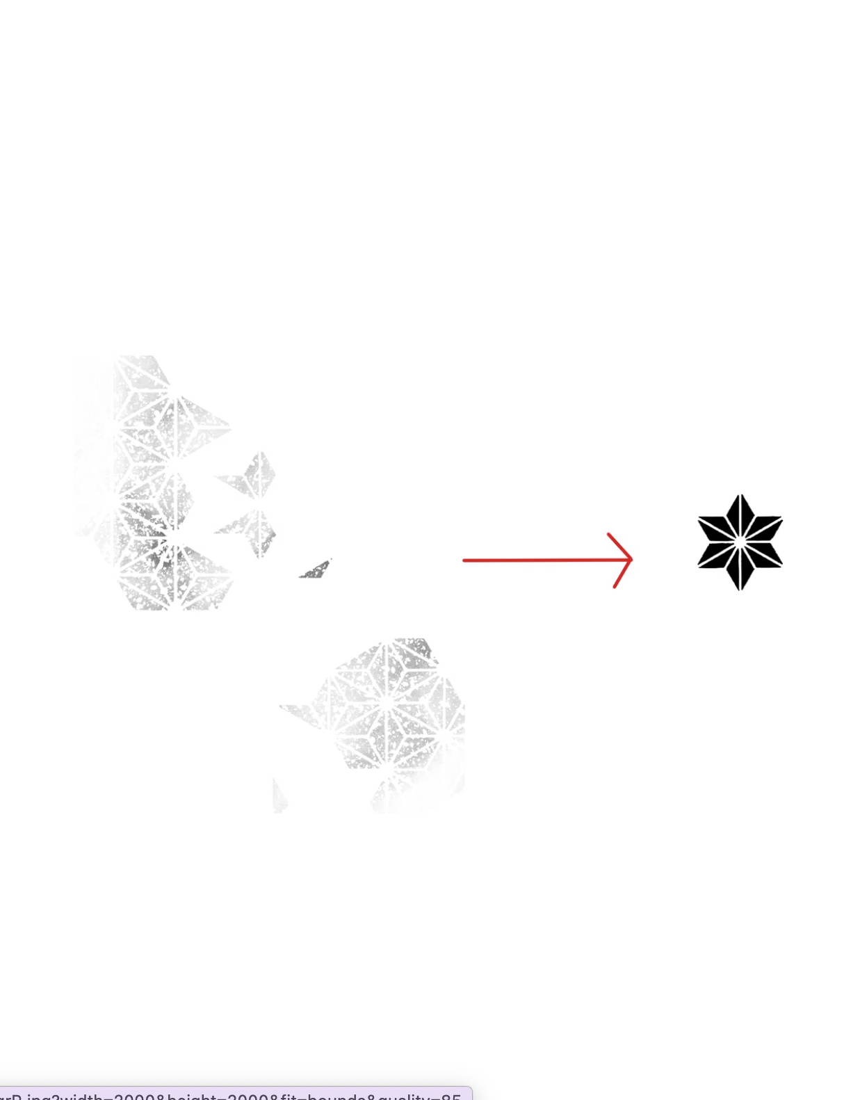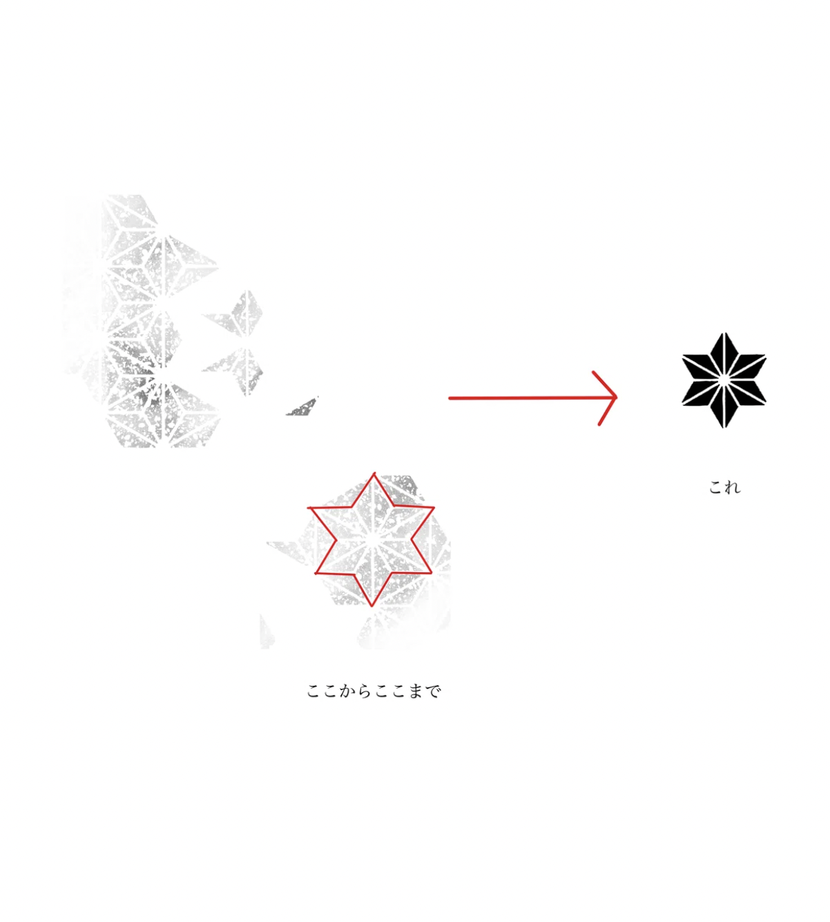 そうして、このようにして発見された図像が紋様化して新しい図案となる。この新しい図案をつくる中で、また「ここまでが、これ」が発見されれば、さらに新しい図像が発見され、図像から図案が生まれ、図案から図像が生まれていく。