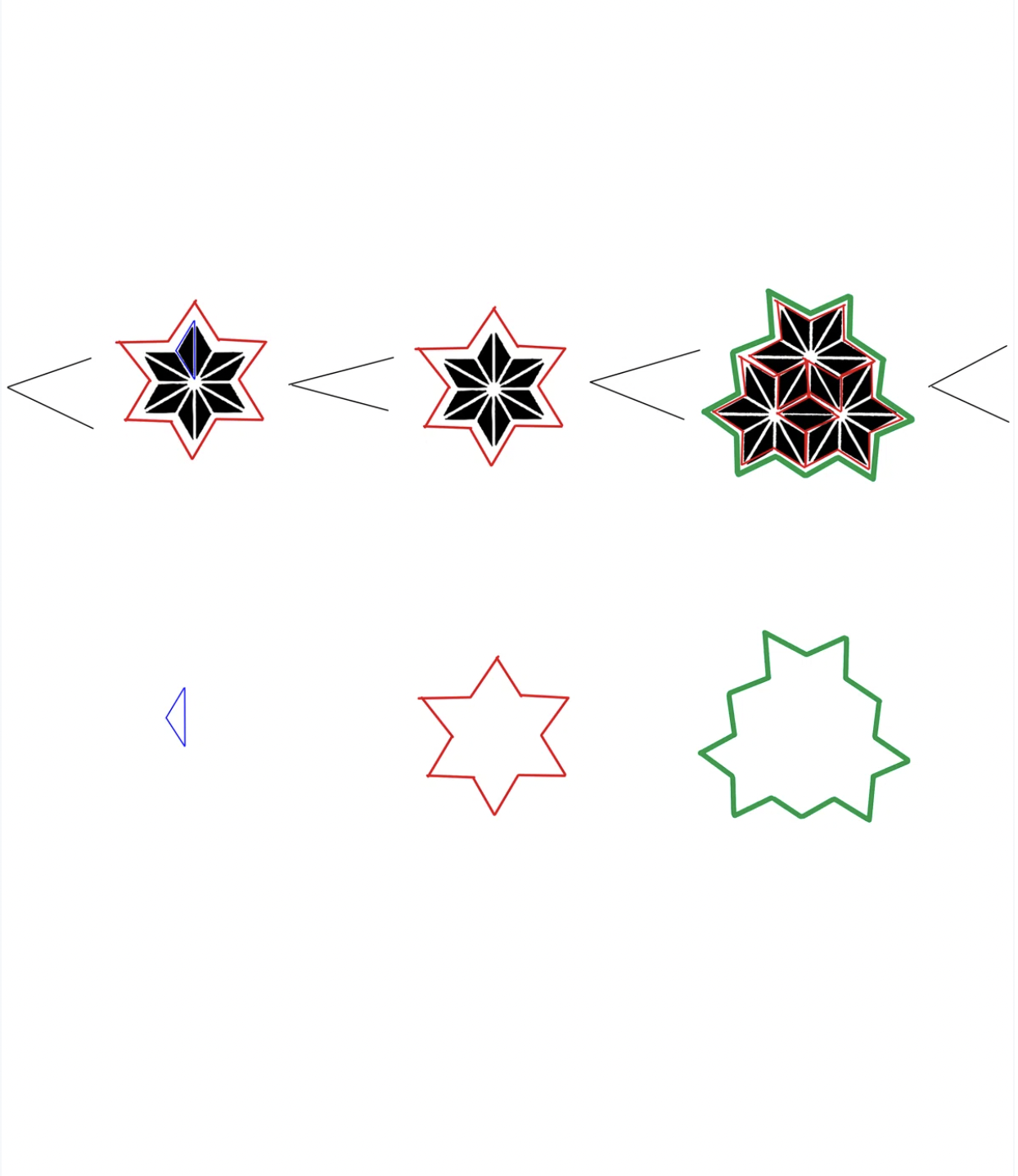 成立させた形(形1とする)を左側のように繰り返すと、新しい形(形Aとする)が成立する。この時、形1は形Aの構成要素の一つになる。